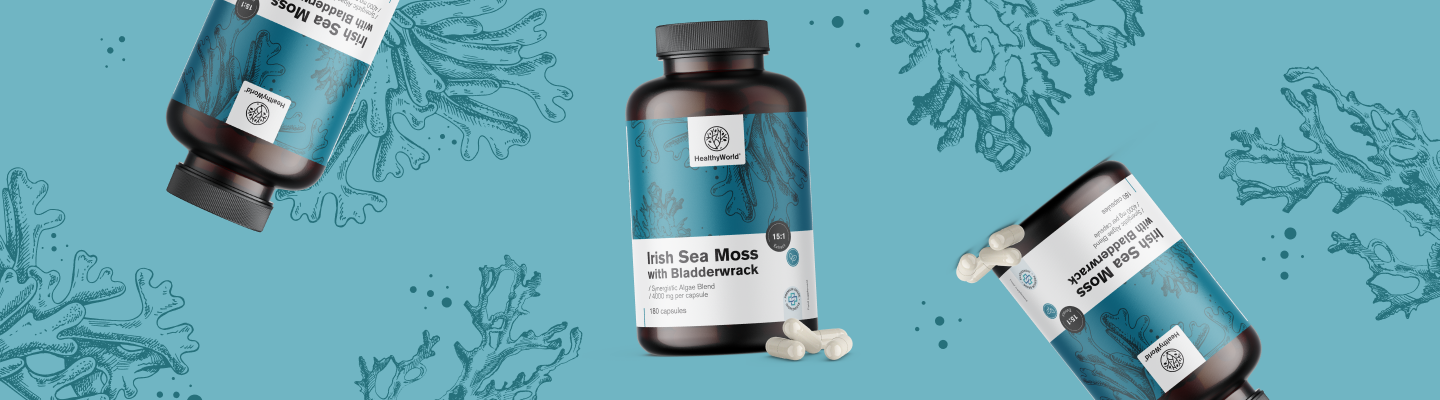 A hólyagos moszatot értékelik a zsíranyagcsere támogatása és ezáltal a testsúly szabályozása terén. Az ír moha tökéletesen kiegészíti hatását, így együtt teljes szinergiát alkotnak, amely átfogóan támogatja a testet, hozzájárul az egyensúly és a vitalitás érzéséhez.